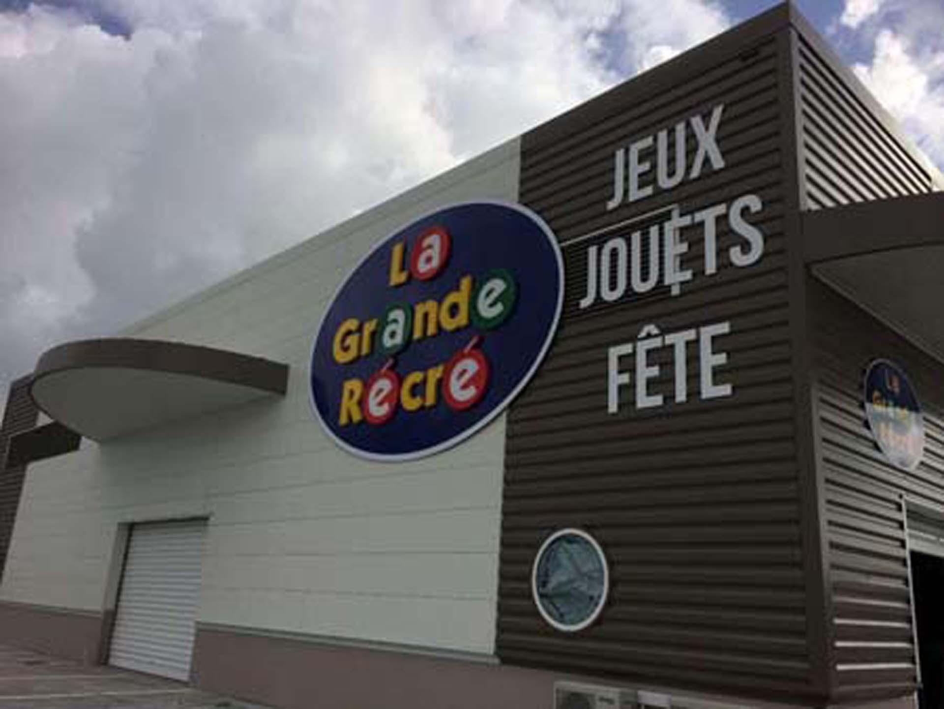 LA GRANDE RECRE DUCOS Fond en alucobon Lettres boîtiers PVC Face avant plexiglas Eclairage interne par LEDS Texte découpé en alucobon